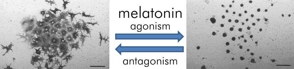 In amphibians melatonin is responsible for night pallor. This enables the convenient assay of melatonergic activity and studies on pigment aggregation of xenopus laevis have been instrumental in developing our understanding.
