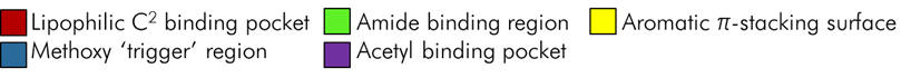 The acetyl binding pocket is deeper than melatonins ethanoyl group would suggest. Homologation enhances binding up to propanoyl but affinity drops steeply thereafter.