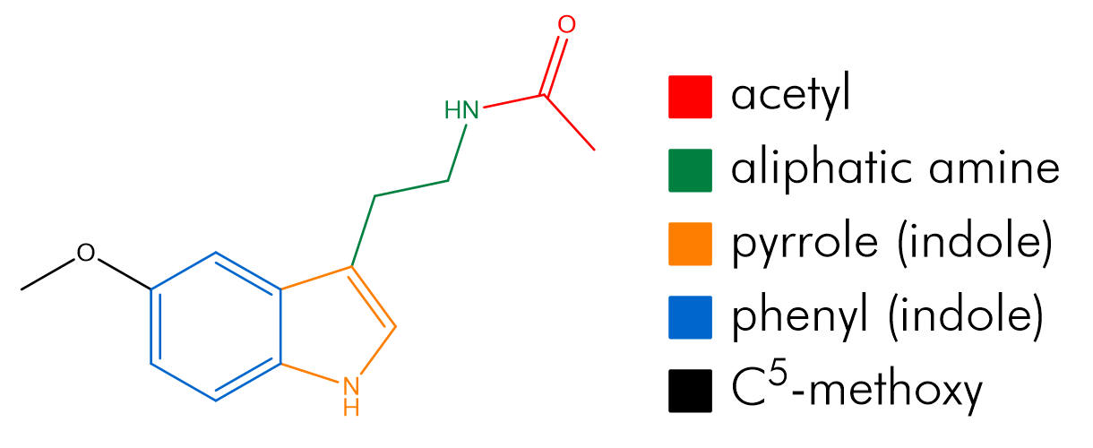 Takeda Pharmaceuticals and Servier Laboratories arrived at the two effective and novel melatonergic agonists, Ramelteon and Agomelatine. Ramelteon has the methoxy and amide side chains constrained into their active conformations whilst the acetyl group is homologated and both drugs exploit the tolerability of pyrrole bioisosterism to enhance pharmacokinetics. As would be expected by homologation and bioisosteric substitution with lipophilic moieties, both drugs indeed possess superior pharmacokinetic profiles. Optimisation of the pharmacophore has produced very potent drugs.