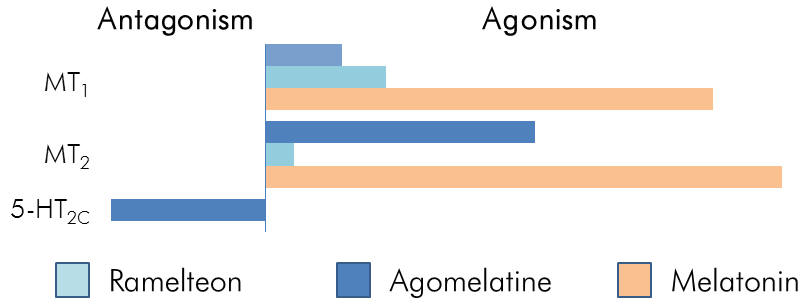 Having been proven in the clinical setting, Ramelteon is available as a chronobiotic and hypnotic in the EU. Agomelatine has also been found to possess additional antidepressant qualities. Both are potent MT1/MT2 agonists, but Agomelatine is also a selective 5-HT2C antagonist. This is likely to contribute towards its anti-depressant efficacy and makes it amenable as an adjunctive agent for use with SSRIs, potentially offsetting SSRI induced anxiety.