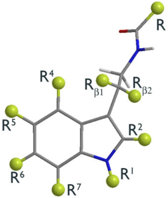 Quite diverse bioisosteres of the pyrrole moiety are tolerated. Assay of N-capped, substituted and rearranged derivatives have shown this part of the cyclic system to not be significantly involved in the binding mode. This gives opportunities to tailor the pharmacokinetic profile.