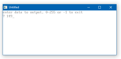 PRINT "enter data to output, 0-255 or -1 to exit"